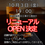 8月上旬の大雨により浸水被害の復旧工事のため休業しておりましたが、10月3日(金)より営業を再開いたします。