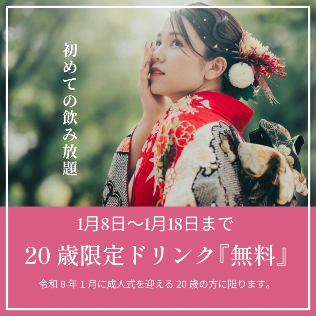 【成人の日】20歳飲み放題無料とさせていただきます